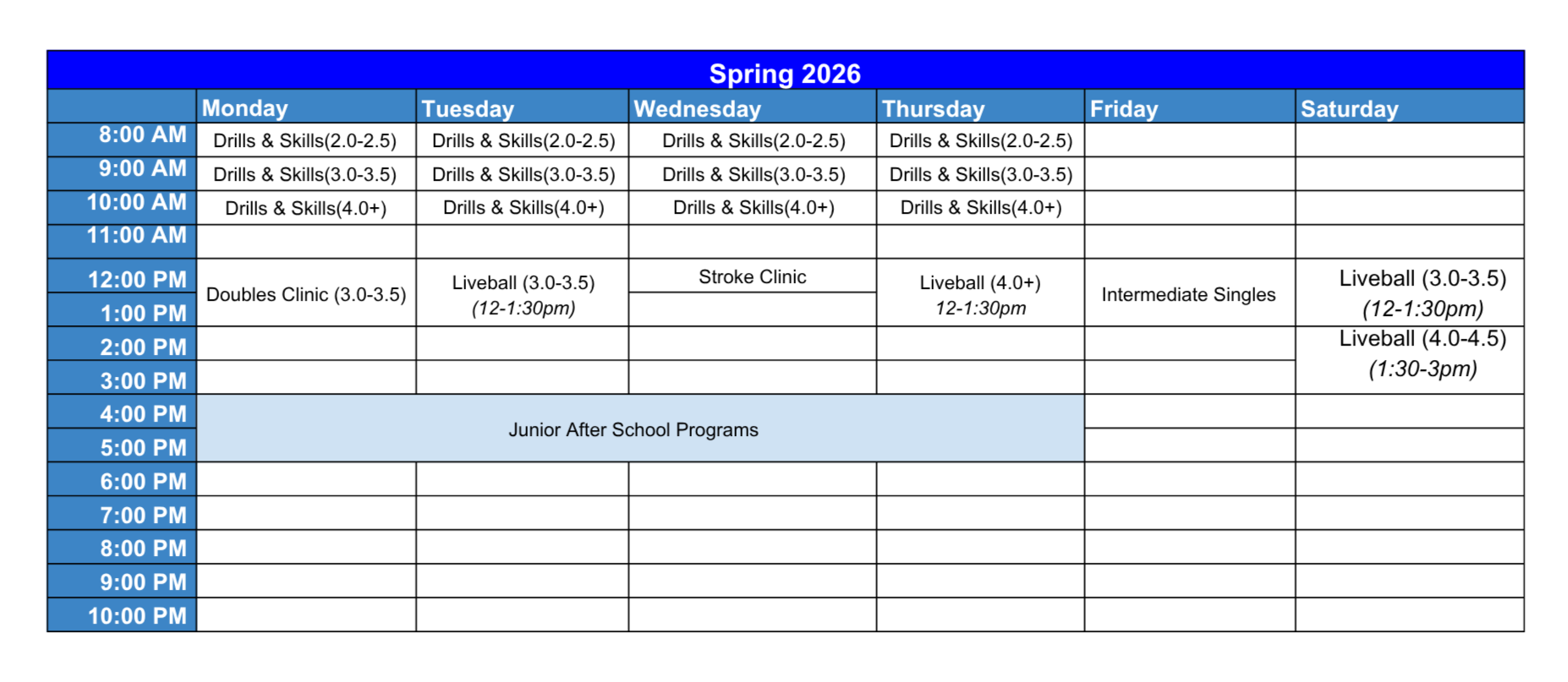 A technical based clinic focused on improving stroke production and consistency. Ideal for players looking to refine their technique through repetition and coach feedback.